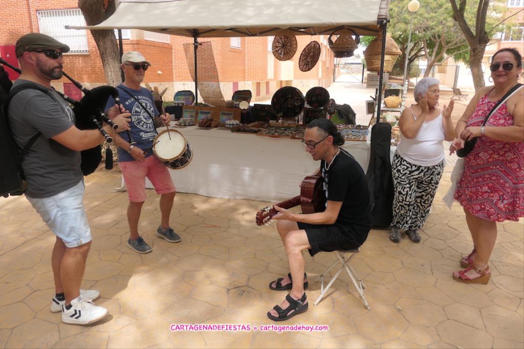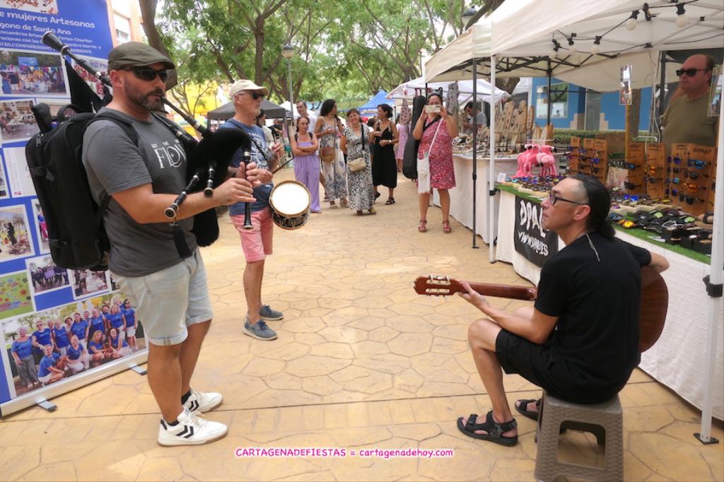 Un grupo de vecinos de la barriada animó con gaita, guitarra y tambor la primera jornada de la novena edición del encuentro de artesanos del Polígono Santa Ana.