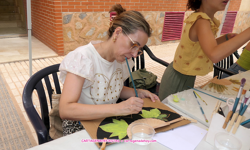La asociación de mujeres artesanas del Polígono Santa Ana puso en marcha ayer, durante la celebración del ‘IX Encuentro de artesanos’ de las fiestas populares, un taller para adornar estos objetos de mano con técnicas de pintura en tela.