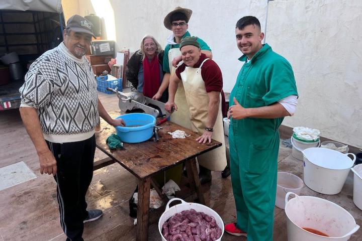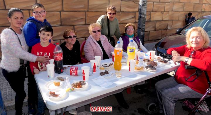 Mariano 'El Ministro', de 'Embutidos La Aparecida' y que cumple medio siglo desde que se estrenó con un marrano, estuvo acompañado por dos ayudantes para llevar a cabo desde las siete de la mañana la elaboración de morcillas, blancos, longanizas, chorizos y otros productos, además de chuletas o careta, entre otras variantes, que pudieron ser saboreadas, acompañadas por pan, de forma gratuita por los que acudieron, generándose otra gran jornada de convivencia.