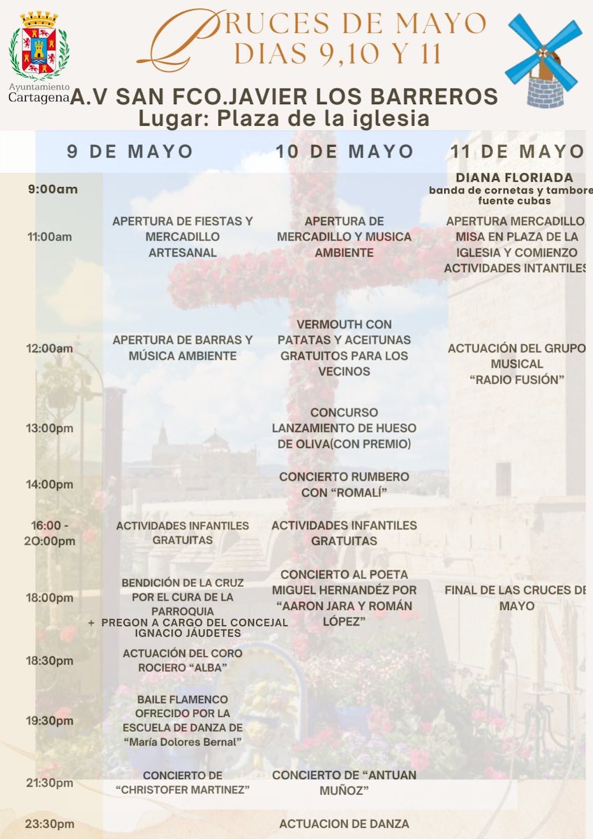 Tres intensas jornadas ofrece la fiesta que organiza la asociación de vecinos San Francisco Javier en la plaza de la iglesia del 9 al 11 de mayo, siendo el edil Nacho Jáudenes el que ofrecerá el pregón. Habrá mercadillo y actuaciones del coro rociero Alba y de baile flamenco y danza, además de música en directo con Christofer Martínez, Antuan Muñoz (foto adjunta), Romalí, Aaron Jara y Román López, grupo 'Radio fusión', etc. Otra propuestas con el concurso de lanzamiento de hueso de oliva y la degustación gratuita de vermú con patatas y aceitunas.