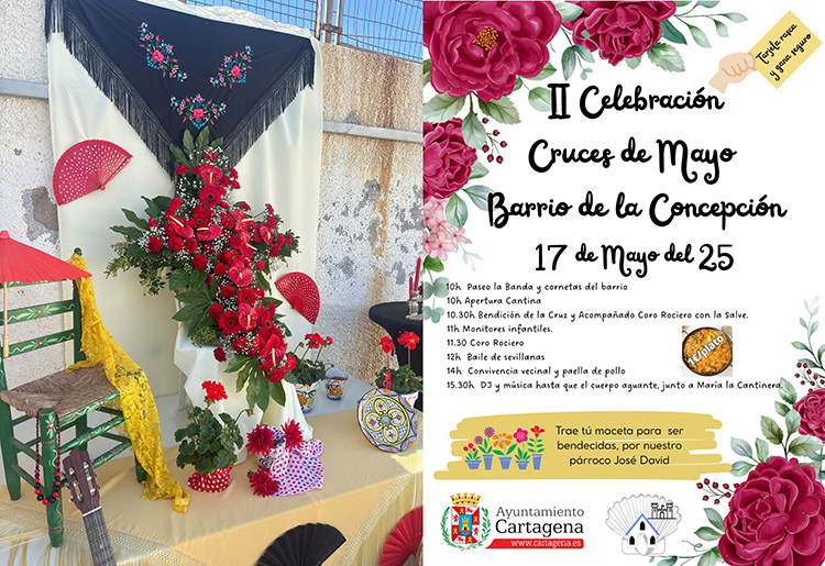 El castizo barrio de Cartagena celebra desde esta mañana la segunda edición de sus cruces de mayo en el patio del local social, coro rociero, baile de sevillanas y una animada convivencia en torno a un gran arroz, además de una cantina que ofrece tortas de camarón por sólo un euro.