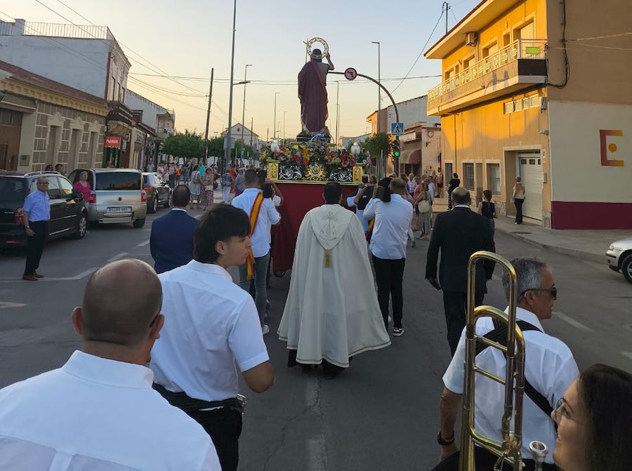 Las fiestas albujoneras han celebrado la tradicional procesión con su patrón por las calles del pueblo, acompañado por los sonidos de la asociación musico-cultural 'Cartagena 1990'. El programa, que comenzó el día 20, continúa hoy con el 'Día de las peñas' y se prolongará con más actividades hasta el domingo.