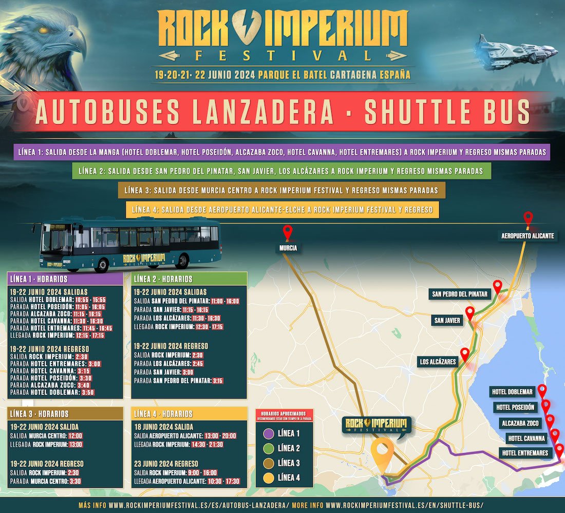 Conexión bus de 'Rock Imperium' con La Manga, Murcia, Mar Menor, Elche...