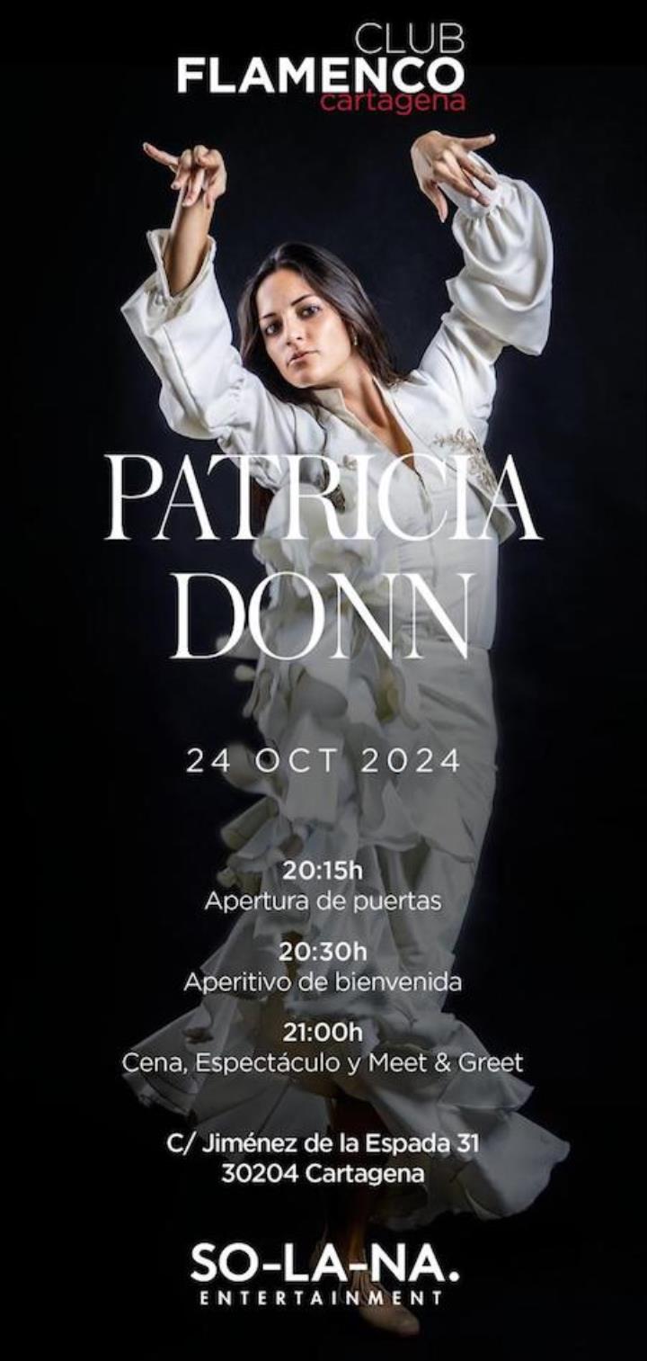 Posteriormente, ha actuado Patricia Donn que, con sólo 27 años, además de ser bailaora es coreógrafa, directora y ha realizado varias giras internacionales. En su espectáculo, ha estado acompañada por el tocaor Juan Antonio Mateos y por la cantaora Rocío Martínez.