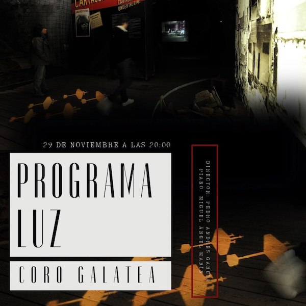 Durante una hora y media los espectadores podrán deleitarse con sonoridades imposibles y otras de gran sencillez en un viaje por obras de J.S. Bach, Handel, J.Rutter, M.Lauridsen, O.Gjeilo, D.Forrest y K.A. Arnesen. El coro Galatea se inspira en la luz cómo transcendencia vital y experiencia espiritual para mostrar el sentimiento de esperanza que intentaba perdurar en las calles de la ciudad durante aquellos años.