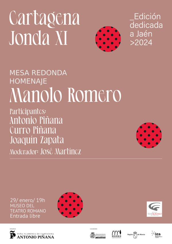 El miércoles, 29 de enero, a las 19 horas, en el Salón de actos del Museo del Teatro Romano, celebraremos un merecido homenaje a Manuel Romero, artista bastante olvidado, a pesar de haber sido uno de los cantaores más brillantes de cantes mineros, siendo reiteradamente premiado en el Festival del Cante de las Minas y galardonado con la Lampara Minera de los años 1977 y 1978.