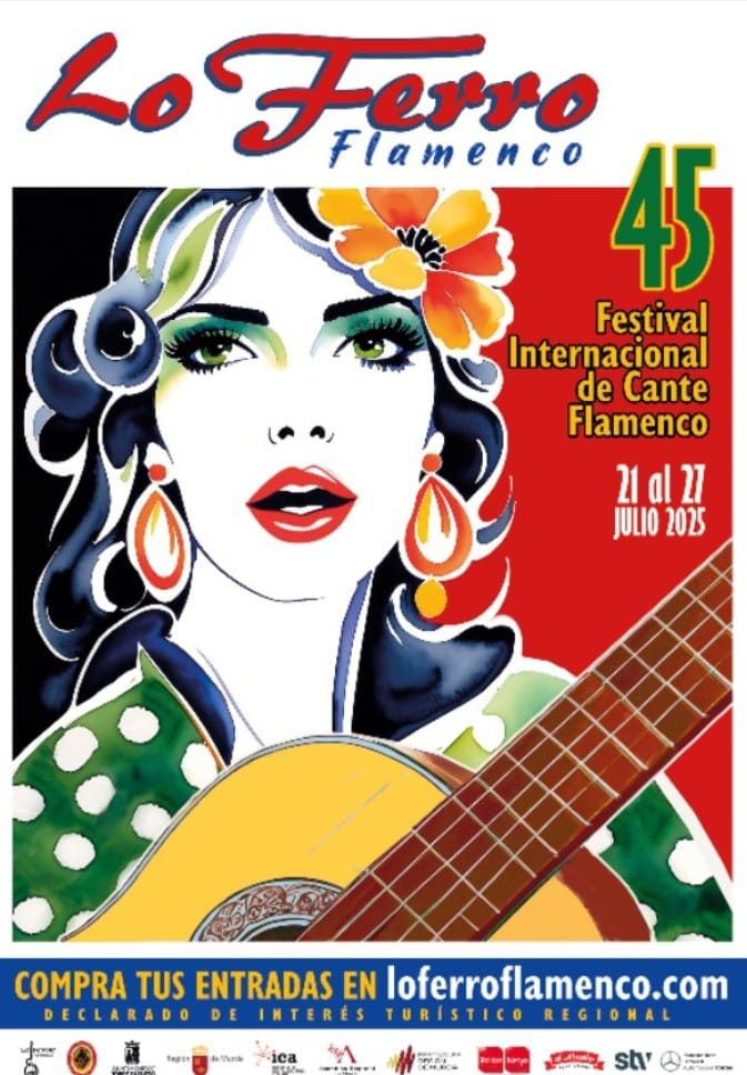 La recién estrenada 45ª edición del Festival Internacional de Cante Flamenco de Lo Ferro se celebrará de los próximos 21 al 27 de julio de 2025 contando con artistas de la enjundia de Israel Fernández, Capullo de Jerez, Paco Cepero, Manuela Carpio, Lela Soto o Julián Estrada, además del Ballet Flamenco de Lo Ferro, Escuela Municipal de Danza de Torre Pacheco, Ballet Kimbara y la esencia del festival, su concurso de cante. En breve pondremos a la venta las entradas a través de la plataforma web “Entradas a tu alcance”, oficinas de CORREOS y en la oficina de la Peña Flamenca “Melón de Oro”.