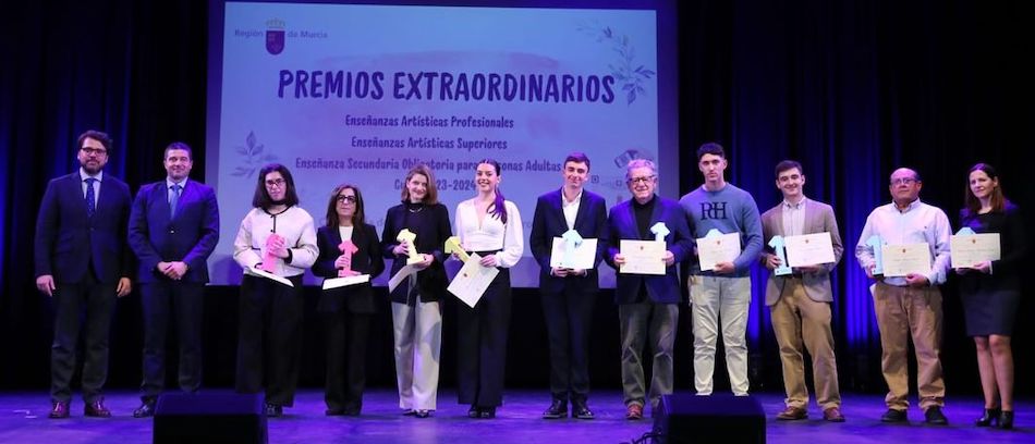 Un total de 23 estudiantes han sido reconocidos en los 'Premios extraordinarios de enseñanzas artísticas profesionales, superiores y educación secundaria obligatoria para personas adultas' del curso 2023-2024, en una gala celebrada en el centro cultural El Luzzy, que también conmemoró el centenario del Conservatorio de Música de Cartagena.