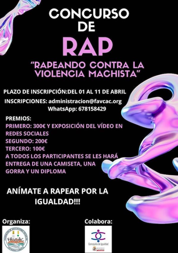 Es el título del concurso de rap que se celebrará el uno al 11 de abril a través de redes sociales con la organización de la Federación de Asociaciones de Vecinos de Cartagena y Comarca con la colaboración de la concejalía de Igualdad.