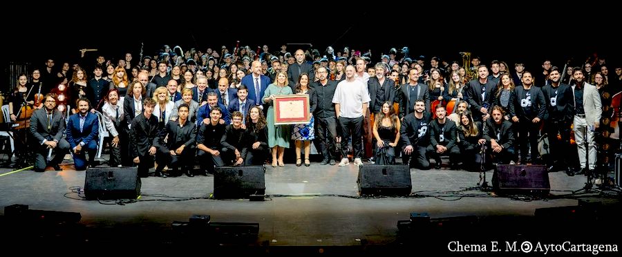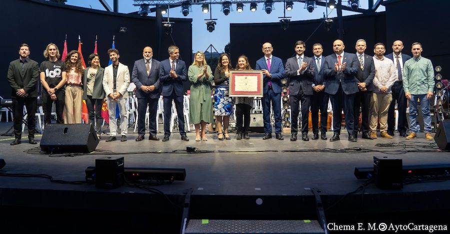 La centenaria institución recibió la 'Medalla de oro de Cartagena' en una multitudinaria gala que tuvo lugar en el auditorio 'Paco Martín' del Parque de Torres en la que, a través de diversos estilos, brillaron tanto los alumnos que han pasado por sus aulas como artistas ahora brillantes, caso de 'Nunatak' y de Antonio García, vocalista de 'Arde Bogotá'.
