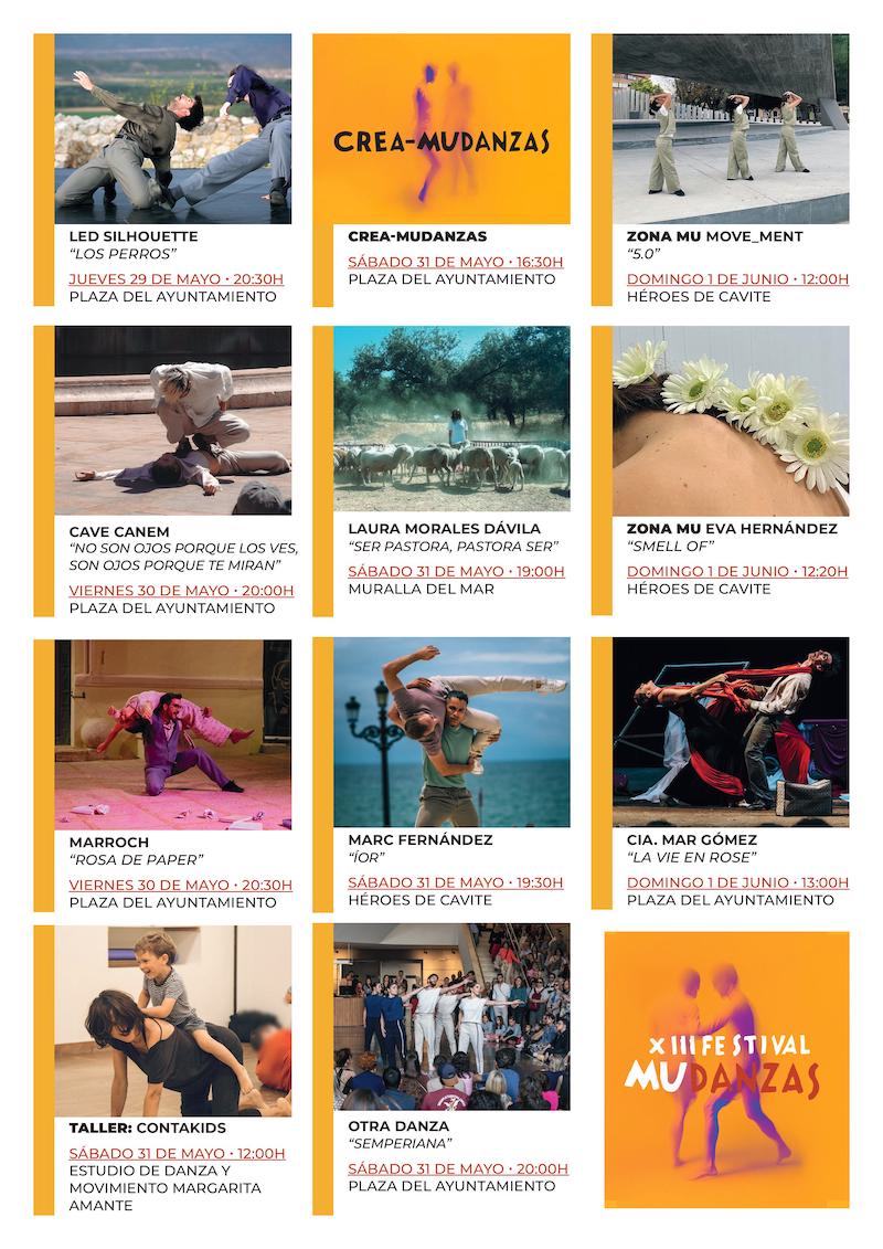 Cartagena vuelve a convertir sus calles y plazas en un escenario vivo con la nueva edición del festival MuDanzas, Encuentros con la Nueva Danza, que se celebrará del 29 de mayo al 1 de junio. El evento organizado por el Ayuntamiento con el apoyo del ICA celebra su 13 edición y reafirma la decidida apuesta municipal por la danza contemporánea, los espectáculos en el espacio público; así como la convivencia de lenguajes y culturas a través del movimiento.