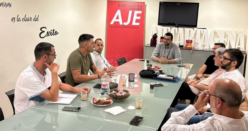 La Asociación de Jóvenes Empresarios de Cartagena y Comarca (AJE Cartagena) comunica la celebración de una asamblea general para el próximo 18 de septiembre en el Vivero de Empresas para Mujeres localizado en el número 2 de la calle Moratalla, en Cartagena. Foto adjunta en la que se observa al presidente, Pablo Nario, en el centro, en la apertura del curso 'Café con AJE' de los martes