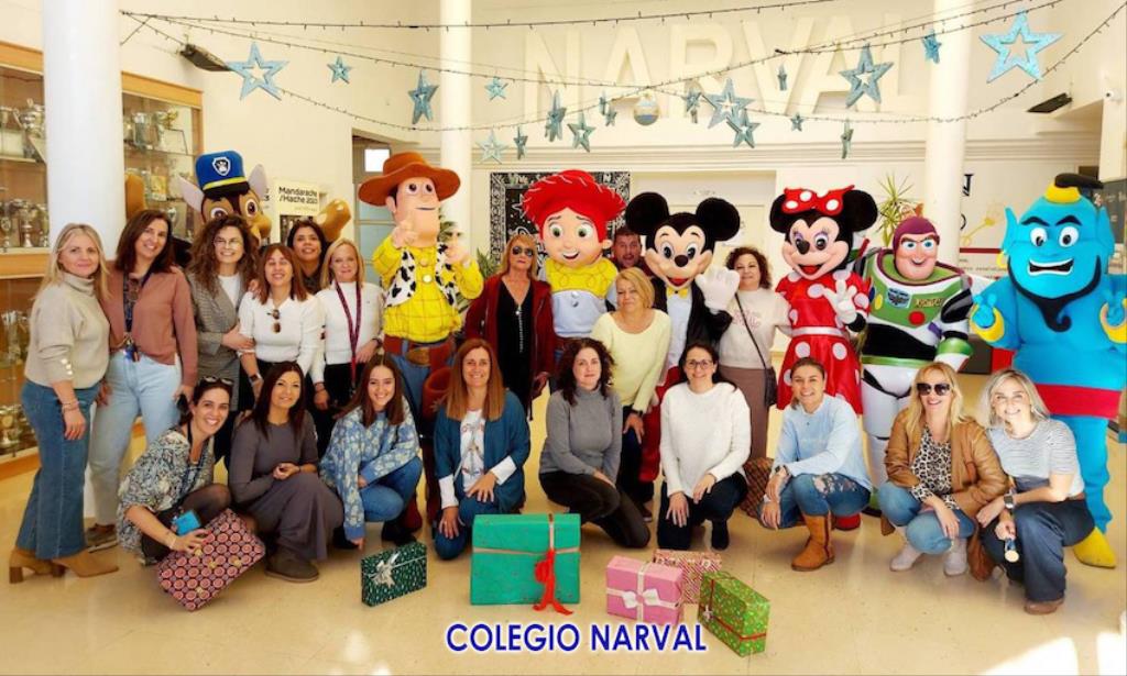 La jornada navideña de Colegio Narval comenzó con la llegada de personajes muy conocidos del mundo Disney, como el ratón 'Mickey' y otros surgidos de películas como 'Toy Story' y 'Aladín', que, además, también acompañaron en diversos momentos a los que se pasearon en el trenecillo navideño. Después, el programa ofreció talleres preparados por las profesoras de educación infantil, pintacaras, algodón de azúcar, photocall, cuentacuentos, espectáculo de magia, entrega de cartas a Papá Noel y un animado desfile final.