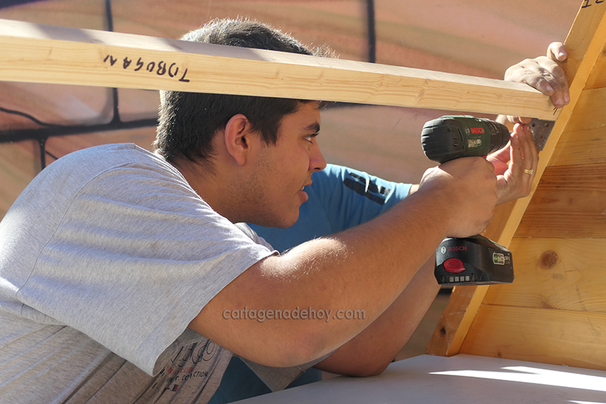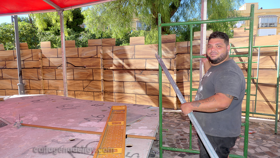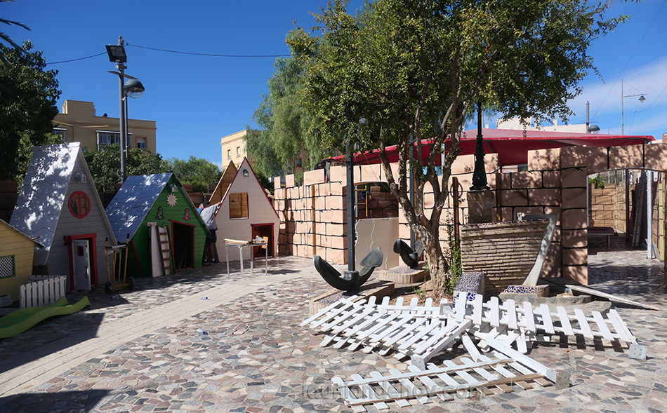 Han comenzado los trabajos para el montaje del tradicional parque de Navidad de la plaza de la Marina Española de Santa Lucía, que acoge el gran belén con figuras en movimiento y diversas casetas y elementos típicos de esas fechas. En la foto, grupo de voluntarios que llevan a cabo las labores.