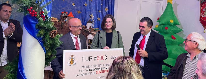 Indicar también que en el acto de inauguración, la agrupación entregó a la asociacion 'Prometeo', que fomenta la integración socio-cultural y laboral de personas con necesidades especiales, un cheque de 600 euros recaudado durante una reciente convivencia de la agrupación.