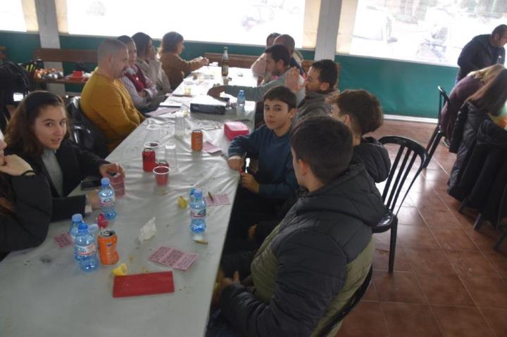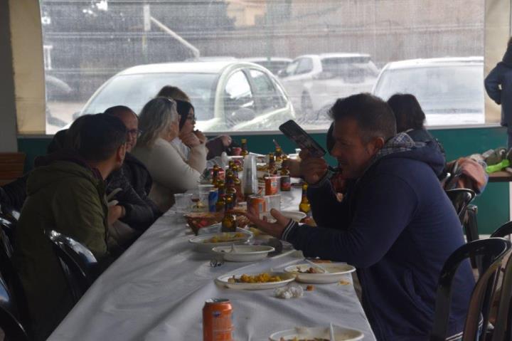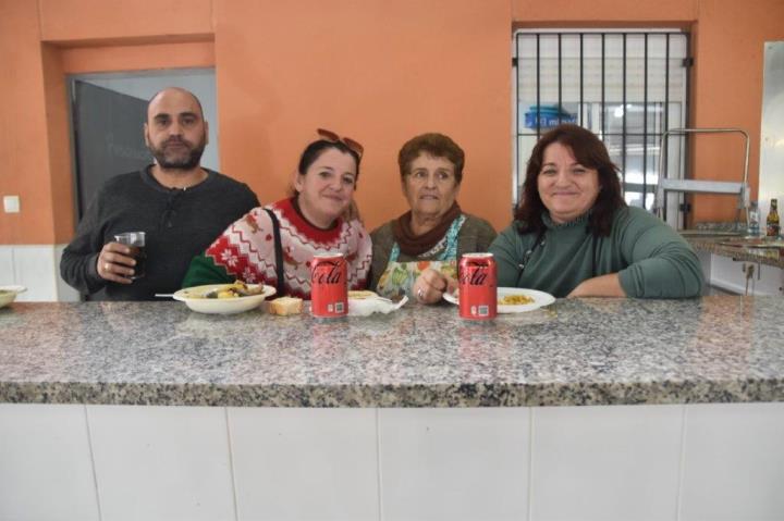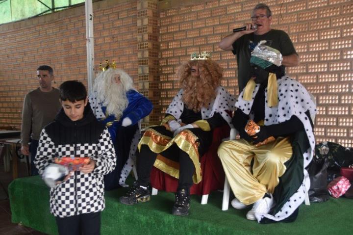 Muy a pesar de la mañana lluviosa, en la que hubo que suspender la cabalgata de los reyes por el pueblo, un año más sus majestades visitaron el Molino Derribao para la alegría de pequeños y mayores, ya que tantos unos como otros viven con la misma ilusión este momento, después de la entrega de regalos y una vez sentados todos, se empezó con el reparto de morcillas, habichuelas con su correspondiente carne de cerdo, ensaladas variadas con productos de nuestra tierra, para terminar con una paella, lógicamente y, como es tradición, con más cerdo, para terminar a ultima hora de la tarde, con un sorteo de magníficos regalos, donados por distintos asociados