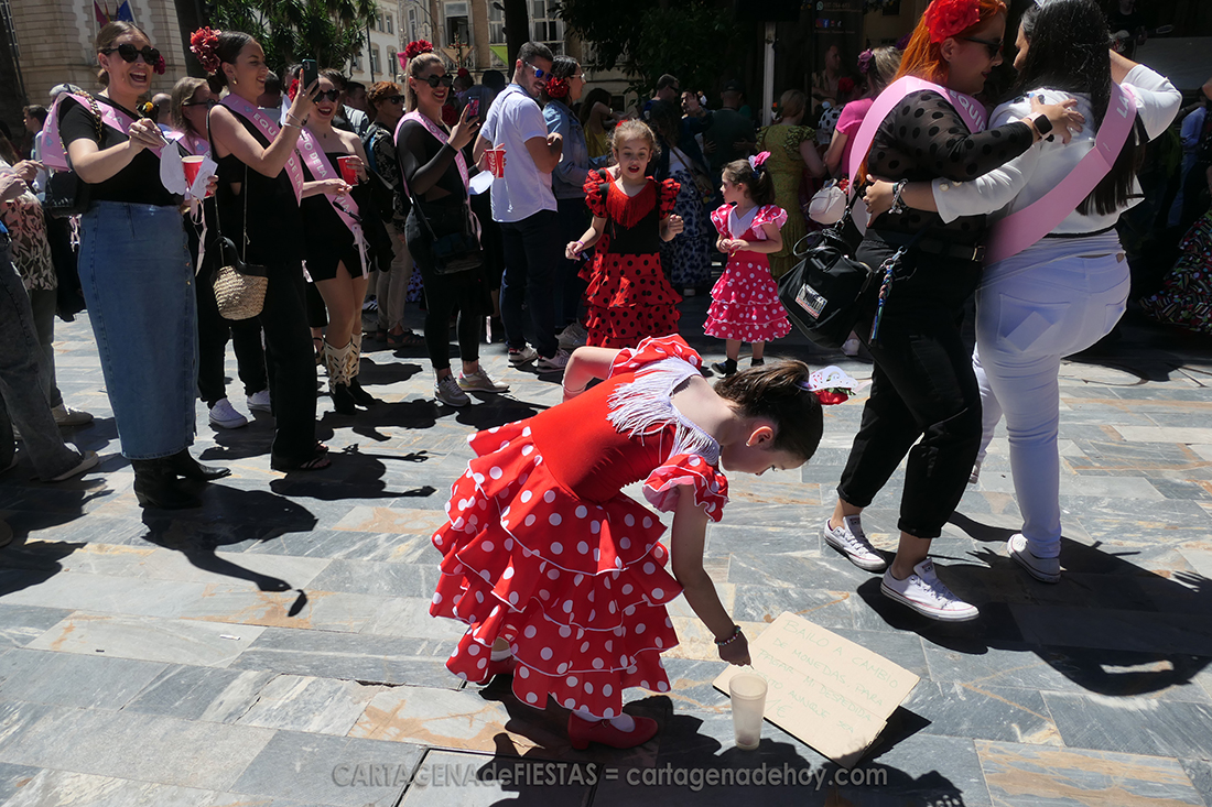 Una joven de Alumbres ha puesto la nota simpática de las ‘Cruces de mayo’ de la ciudad de Cartagena con un cartel que reza: ‘Bailo a cambio de monedas para pagar mi despedida de soltera. Necesito aunque sea un euro’.