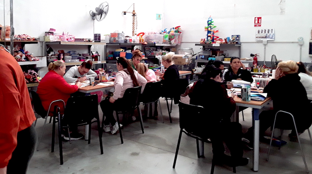 El proceso de recuperación de un juguete incluye varias fases: selección, higienización, rehabilitación, clasificación por edad, creación de lotes temáticos y empaquetado. Además, las mujeres del taller confeccionan ropa para muñecas y adaptan los juguetes para garantizar que cada lote sea especial e incluya al menos un libro.