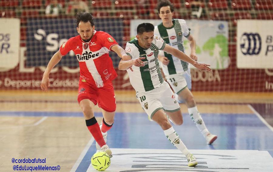 El equipo cartagenero de primera división de fútbol sala vence en la pista del Córdoba con goles Pablo Ramírez, en dos ocasiones, y de Gon Castejón, con lo que le será intranscendente la última jornada de liga, pudiendo ser cualquiera de los cuatro equipos que tiene por delante en la clasificación su adversario en la lucha por el título.