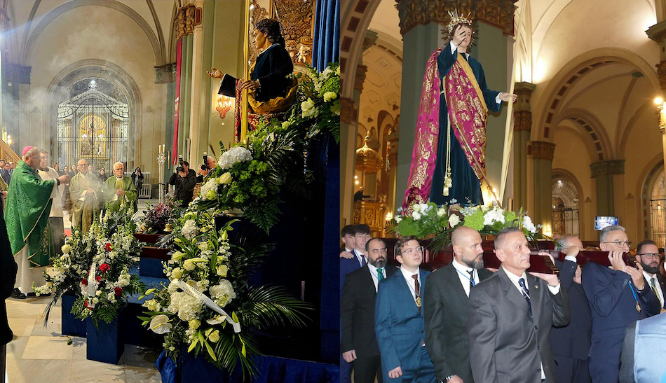 La imagen del Discípulo Amado creada por el artista ciezano Antonio Jesús Yuste Navarro fue bendecida por el obispo en un acto que tuvo lugar en la iglesia de Santa María, para después protagonizar una procesión claustral.