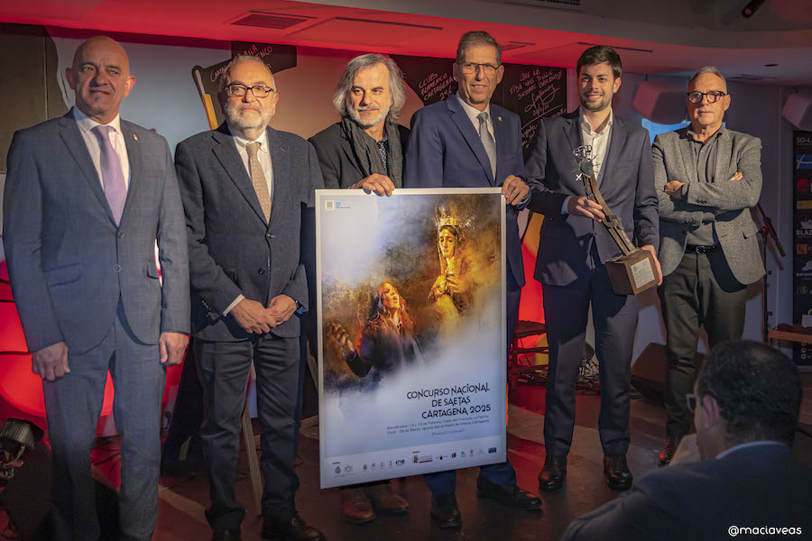 El XI Concurso Nacional de Saetas de Cartagena ya tiene cartel para este 2025. Se trata de una obra del pintor Pedro Diego Pérez Casanova, que ha sido presentada este miércoles junto al trofeo del certamen. Este galardón es una obra del escultor Fernando Sáenz de Elorrieta que conseguirá el ganador del certamen en la final del certamen del próximo 29 de marzo en la iglesia de Santa María.