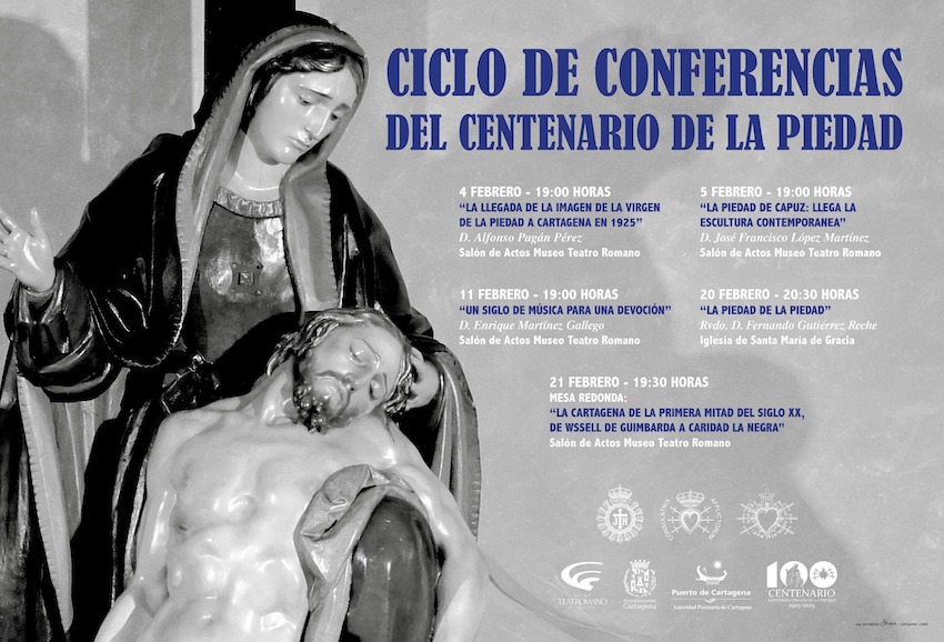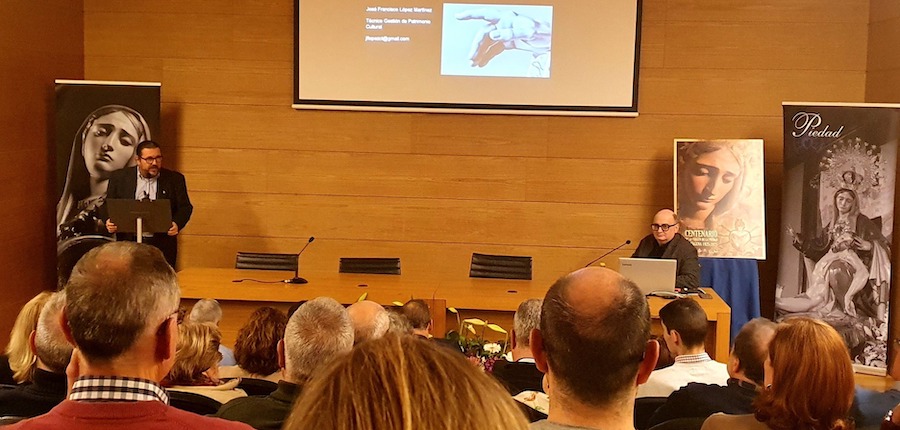 El ciclo de conferencias con motivo del centenario de la llegada de la imagen de la Virgen creada por el escultor José Capuz ha comenzado con as ponencias de Alfonso Págan y de José Francisco López en el salón de actos del Museo del Teatro Romano. La siguiente será la que ofrezca Enrique Martínez el próximo martes sobre 'Un siglo de música para una devoción'.