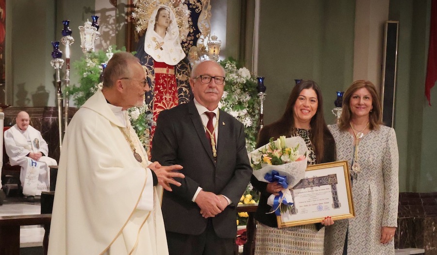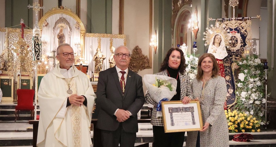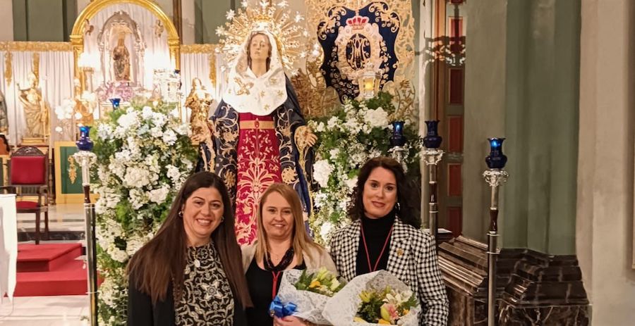 Los tercios de la agrupación de la Virgen de la Cofradía California han llevado a cabo la entrega de nombramientos de madrinas de sus tres agrupaciones: Raquel Martínez Mateo (tercio de Nuestra Señora de la Esperanza), María del Carmen Ponce Baños (tercio del paso de Jesús y María en casa de Lázaro) y María Isabel Jumilla Martínez (tercio de la Virgen del Primer Dolor).