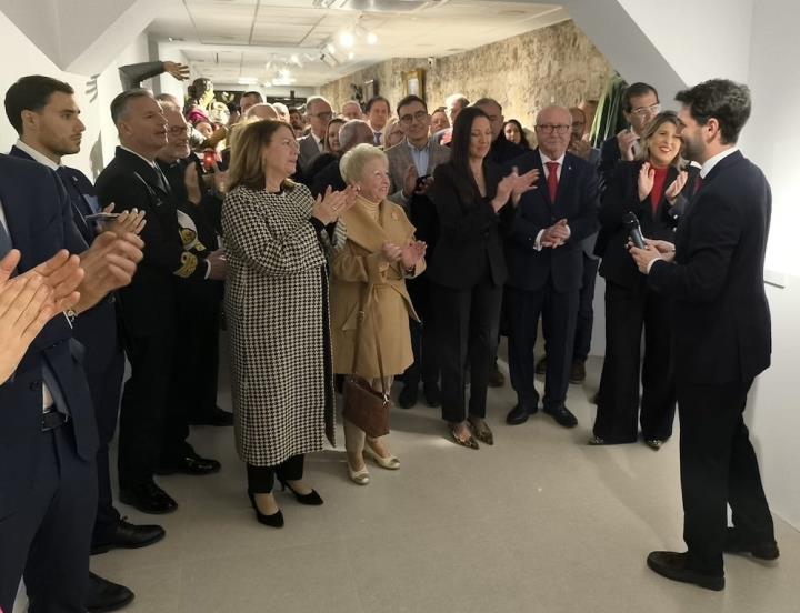Seguidamente, el mayordomo de Relaciones Institucionales de la cofradía, Antonio Martínez Valverde (Nono), presentó al comisario de la exposición, el Doctor en Historia del Arte y profesor de la Universidad de Murcia Álvaro Hernández Vicente, quien fue explicado detalladamente ‘una por una‘ todas las piezas de la muestra.