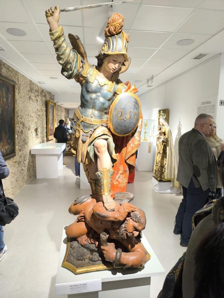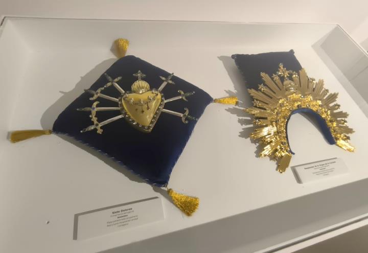 «En esta exposición hay esculturas, cuadros, tapices, libros y piezas de orfebrería cedidas tanto por la Cofradía California y la del Cristo del Socorro, como por la Iglesia de Santa María de Gracia, la Iglesia del Santiago Apóstol del Barrio de Santa Lucía y el Santo y Real Hospital de la Caridad. Asimismo, se exponen obras y documentos del Archivo Municipal, el Museo Arqueológico, el Palacio Episcopal, la Iglesia de Santa María la Real de Aledo, la Cofradía de Las Maravillas de Cehegín».