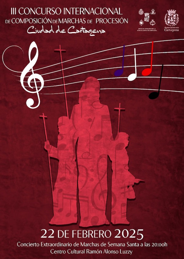 El III Concurso de Marchas de Semana Santa 'Ciudad de Cartagena', organizado por el Ayuntamiento y la Junta de Cofradías, celebra este sábado 22 de febrero, a las 20 horas, su concierto extraordinario. La Agrupación Musical Sauces será la banda encargada de interpretar en directo las cinco piezas finalistas del certamen, que este año se abría internacionalmente, por primera vez. Al acto, que arrancará a las 20 horas, con entrada libre, hasta completar aforo, asistirá el concejal de Cultura, Ignacio Jáudenes.