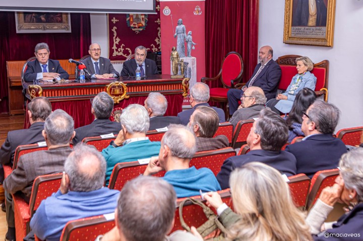 El portapasos de 'la Caridad Chica' y exministró ofreció una amena conferencia en el salón de actos de La Económica en una nueva jornada del programa de la Asociación Procesionista del Año.