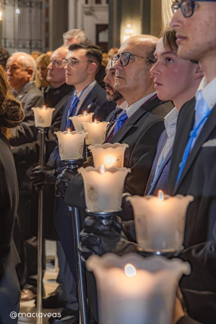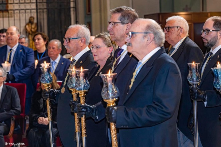 La Iglesia de Santa María de Gracia acogió anoche el solemne Resurrexit, el acto litúrgico más significativo de la Cuaresma para la Real e Ilustre Cofradía de Nuestro Padre Jesús Resucitado, que ha congregado a numerosos fieles y cofrades en una ceremonia llena de simbolismo y fervor.