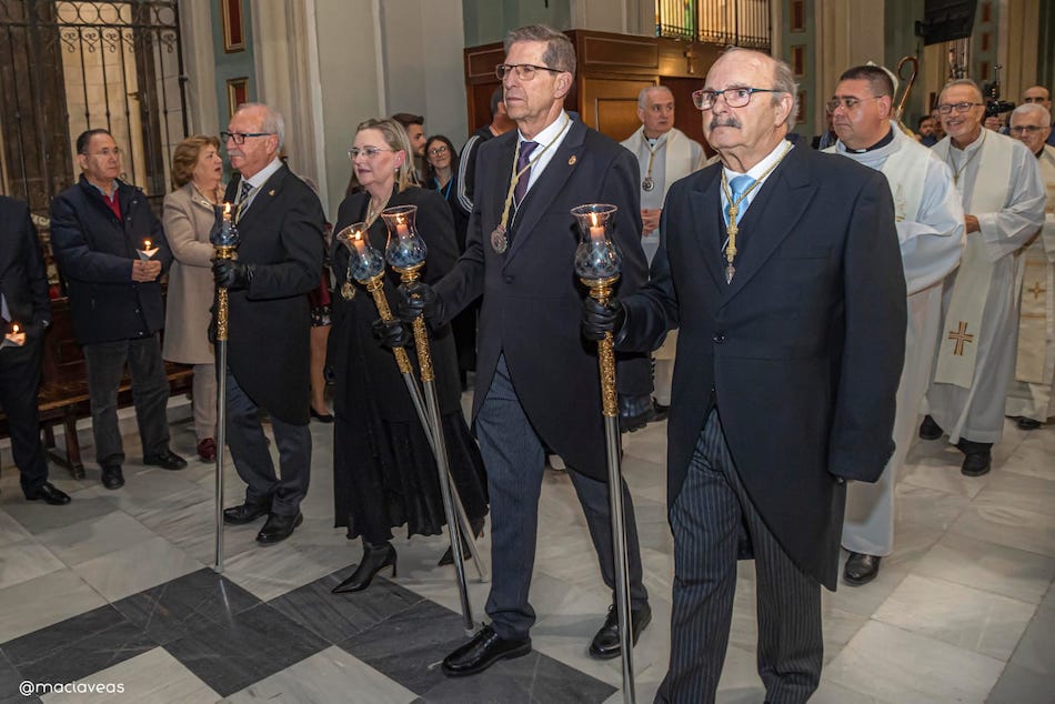 El acto ha sido presidido por el Obispo de la Diócesis de Cartagena, Monseñor José Manuel Lorca Planes, en presencia de numerosas autoridades civiles y militares, entre ellas la alcaldesa de Cartagena, Noelia Arroyo Hernández; los padrinos del 80 aniversario de las procesiones resucitadas, Aurora Flores e Ignacio Jáudenes; el Procesionista del Año 2025, José López; la Nazarena Mayor, María Ángeles Valverde; el Pregonero de este año, Gonzalo Wandosell; así como representantes de la Universidad Católica San Antonio de Murcia (UCAM) y de la Universidad Politécnica de Cartagena (UPCT). Como es tradicional, han asistido los hermanos mayores de las cuatro cofradías cartageneras, sus respectivos capellanes y otros sacerdotes de la ciudad, acompañados de una multitud de procesionistas.