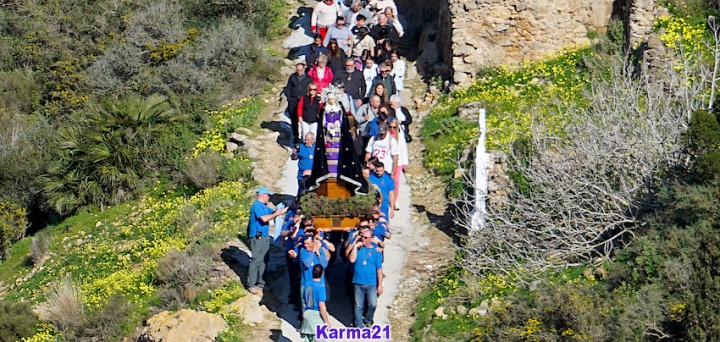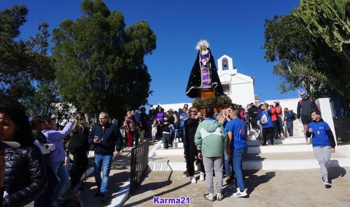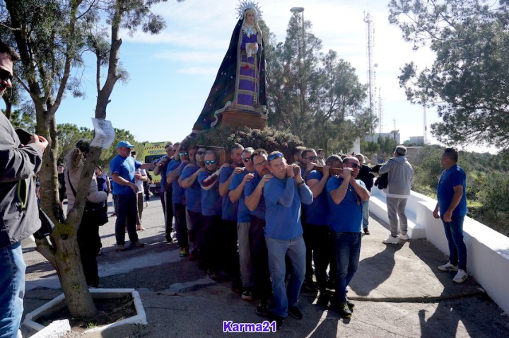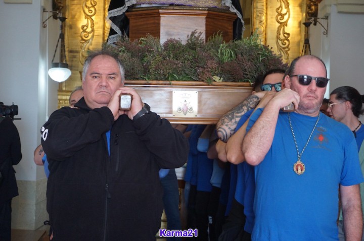 La Virgen ha llevado a cabo la tradicional salida de su ermita (que este año ha lucido recién pintada y con campana de estreno), siendo portada a hombros de hombres y mujeres hasta llegar a Santa Lucía, con paradas cargadas de emoción en el cementerio y en la parroquia de Lo Campano, además de que numerosos pequeños han sido aupados para contactar con su manto en busca de protección eterna.