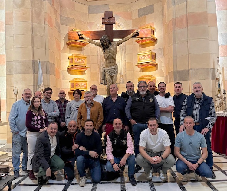 El tradicional 'camino de la cruz' del único crucificado de la Cofradía California recorrerá el entorno de la iglesia de Santa María. En la foto, una reciente convivencia de la agrupación de la Santa Cena y Cristo de los Mineros