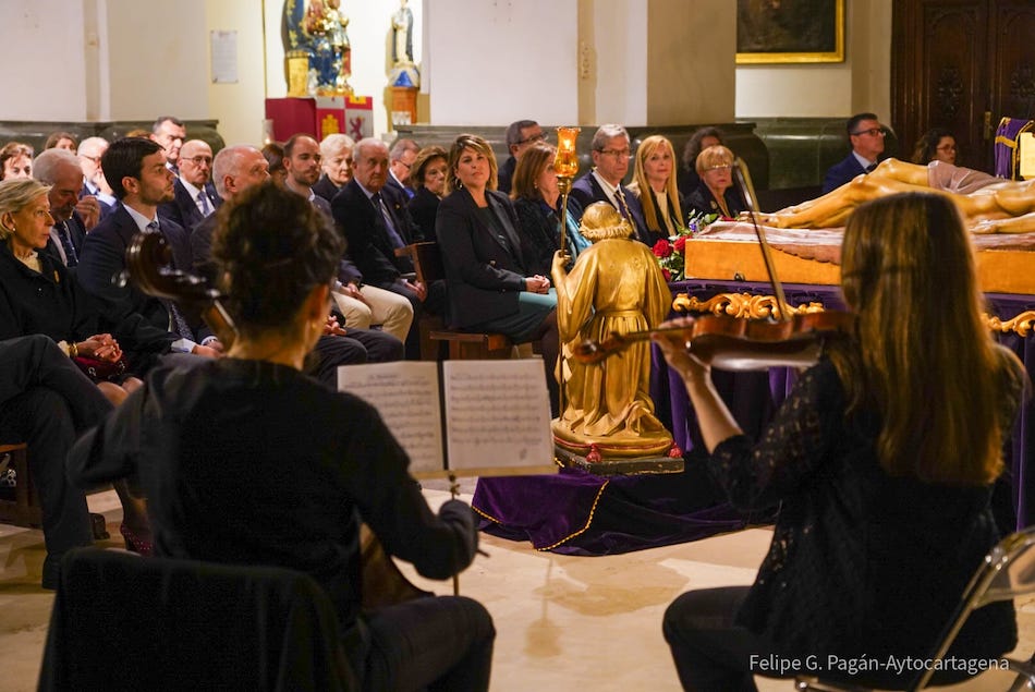 La alcaldesa de Cartagena, Noelia Arroyo, ha felicitado a la presidenta de la Universidad Católica por “su mensaje de fe, devoción y de esperanza en la resurrección ante el Cristo Yacente, que nos prepara, en esta Cuaresma, a vivir nuestra Semana Grande”.