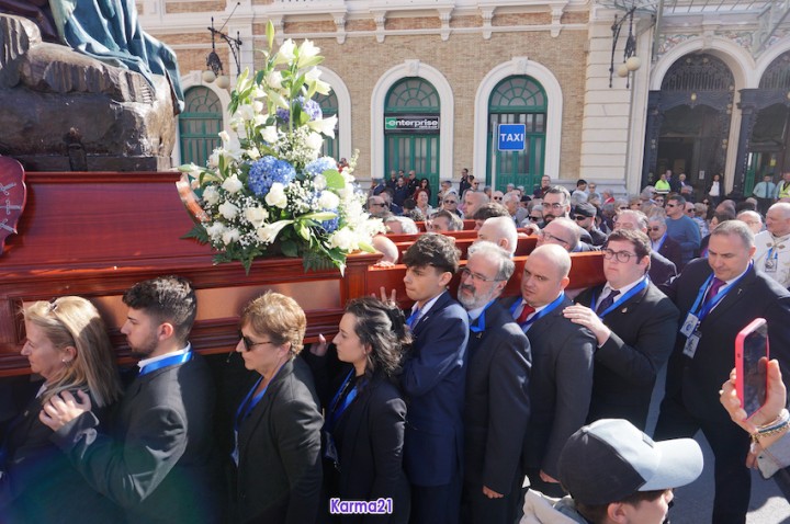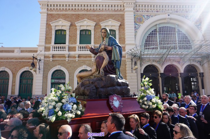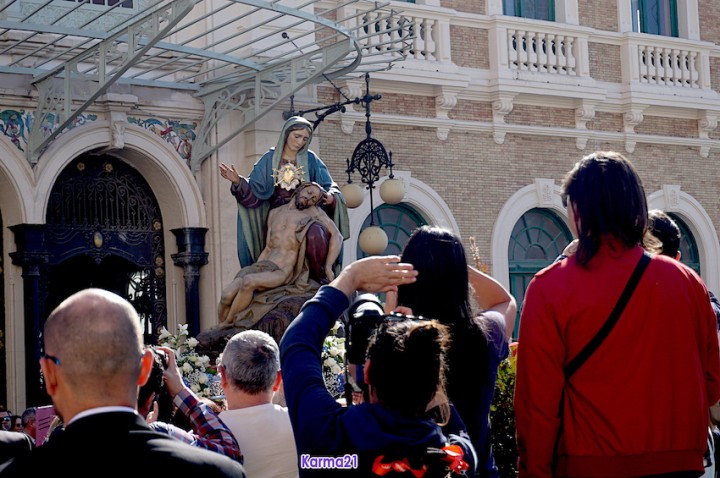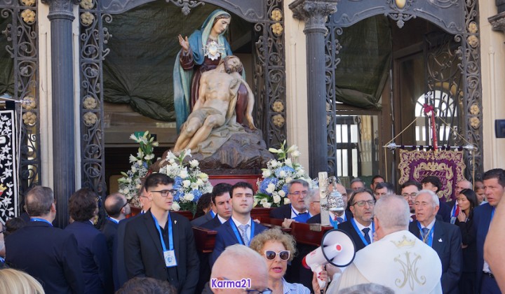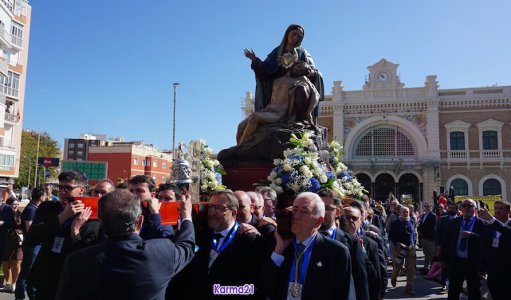 Cientos de personas han acudido a ver salir a la Virgen de la Piedad desde la estación de tren, tal y como sucedió hace justamente un siglo con autoridades religiosas y civiles encabezando la bienvenida popular a la nueva imagen creada por José Capuz.