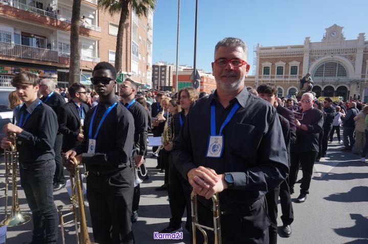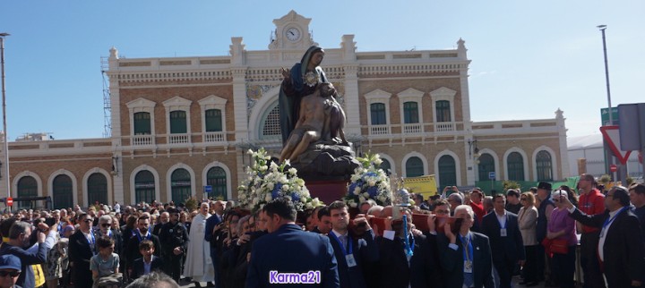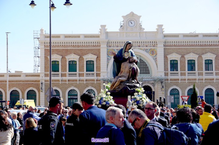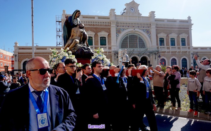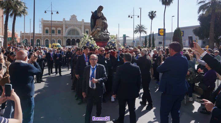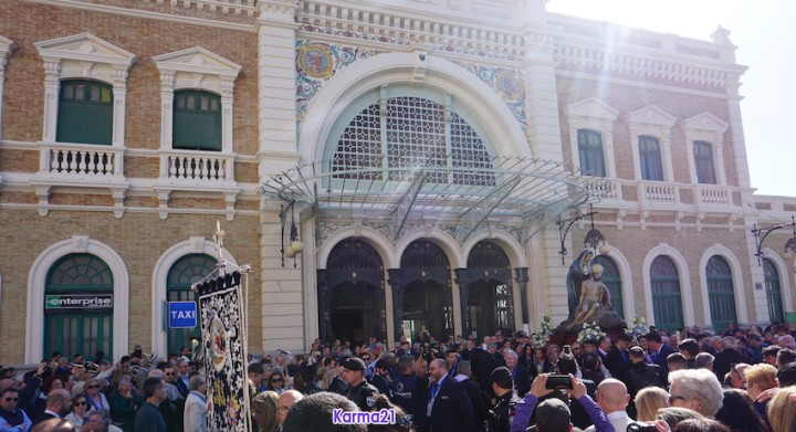 Desde la entrada de la estación ha salido la imagen con un centenar de promesas detrás, mientras que en cabeza iban los estandartes, el grupo de tamboristas y la banda de música, que ha comenzado interpretando 'Plegaria', para después pasar a 'Caridad Chica'.