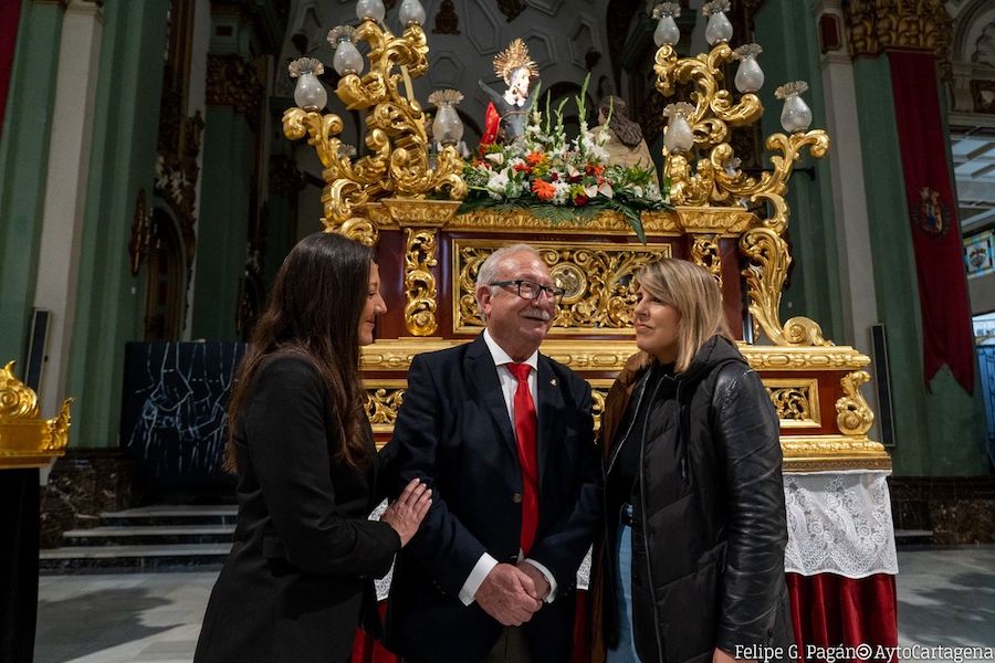 La alcaldesa, Noelia Arroyo, no ha dudado en acercarse a primera hora a la iglesia de Santa María de Gracia, que ha abierto sus puertas toda la tarde para que cartageneros y visitantes pudieran ver los tronos que tenían que haber salido en el desfile. Hasta el templo también se han acercado la consejera de Turismo, Cultura, Juventud y Deportes, Carmen María Conesa, y el concejal de Infraestructuras, Diego Ortega.