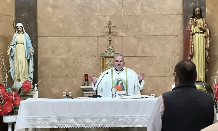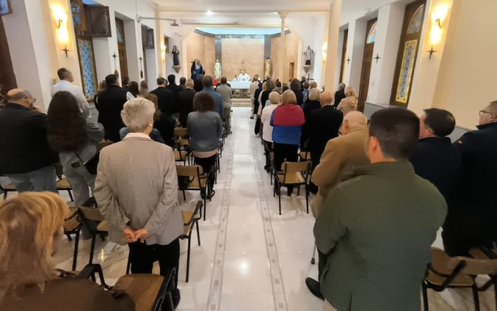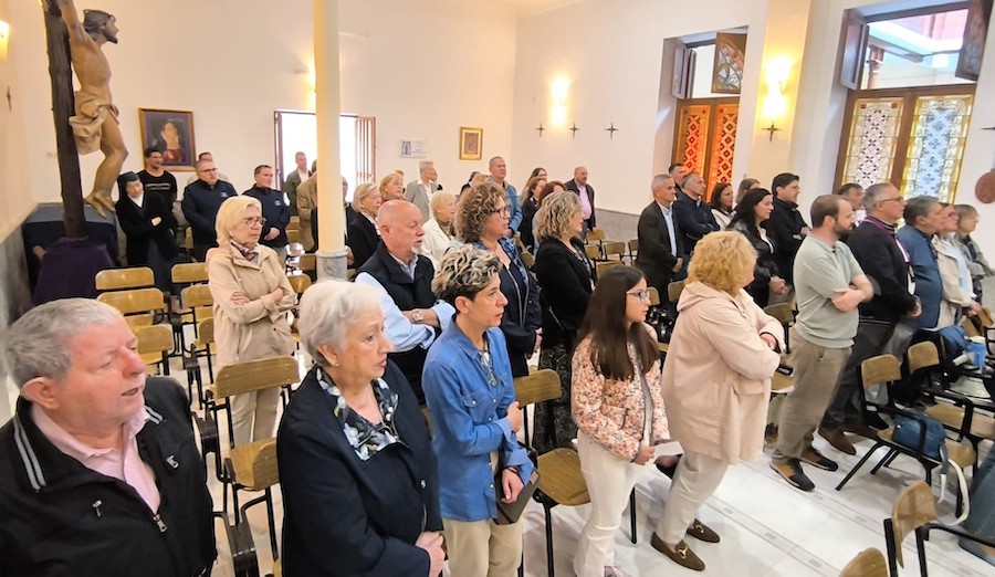 Una vez llegaron a la capilla del Colegio Patronato del Sagrado Corazón de Jesús el capellán de la cofradía, D. Lázaro Gomáriz López, celebró la Eucaristía. En su homilía afirmó que «necesitamos siempre la intercesión de la Virgen María, tal y como nos ha dicho León XIV al iniciar su pontificado. Pongámonos a los pies de nuestra Madre para que ilumine nuestra vida, nuestro corazón y guíe al nuevo Santo Padre». La Misa finalizó con el canto de la Salve.
