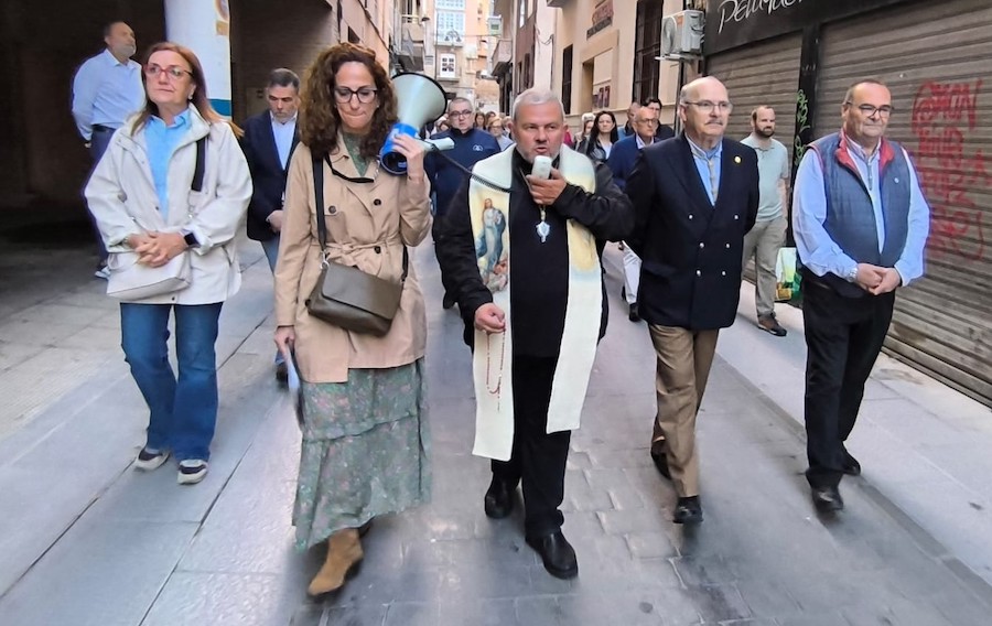 El Rosario comenzó a las siete de la mañana desde la parroquia castrense de Santo Domingo, donde se congregaron un centenar de devotos. Desde allí, fueron rezando los misterios gozosos por las calles del Casco Histórico tras la imagen esculpida en 1979 por Antonio García Mengual.