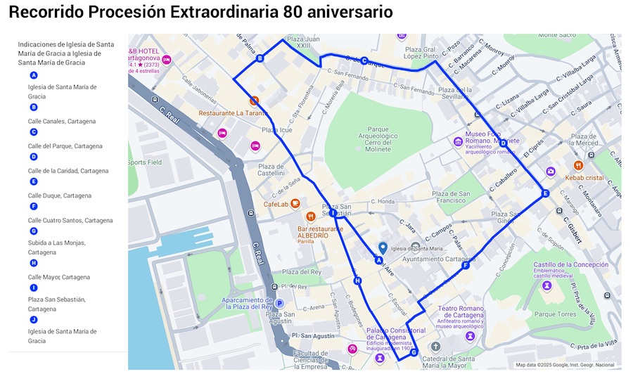 La procesión partirá desde la Iglesia de Santa María de Gracia y seguirá el siguiente recorrido: