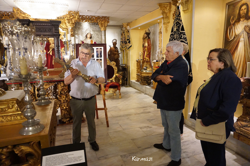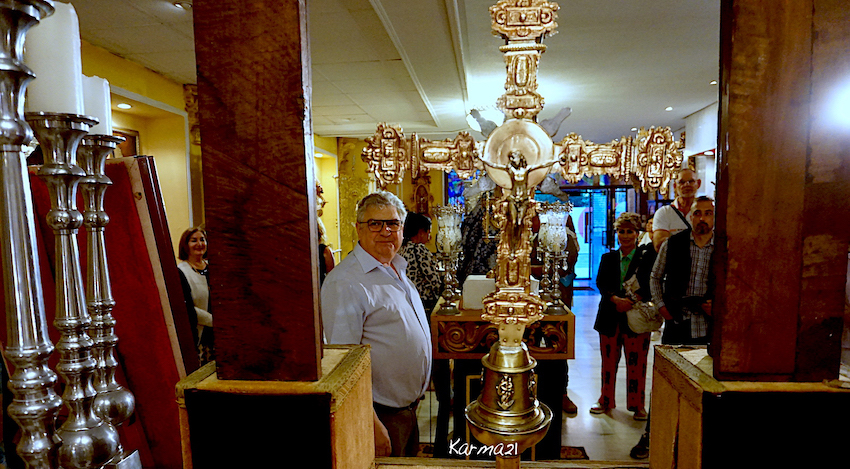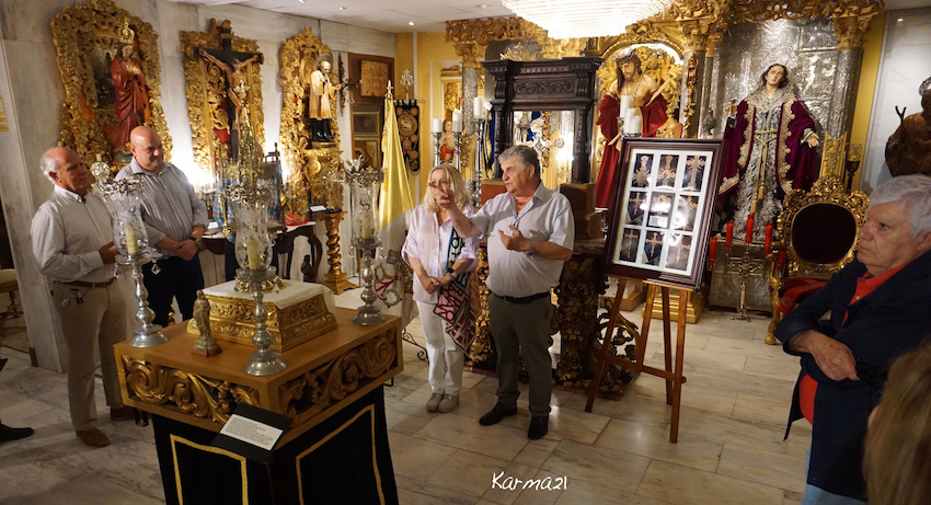 Estanis García Malavia, de la empresa cartagenera de joyería que fabricó la cruz de Caravaca que llevaba el papa Francisco, explicó con detalle el arduo trabajo llevado a cabo, durante mas de 32 horas, con una pieza que estuvo en un antiguo convento de Cartagena y que ha sido cedida a la cofradía del Cristo de la Divina Misericordia, donde luce en un mueble de época que también es novedad.