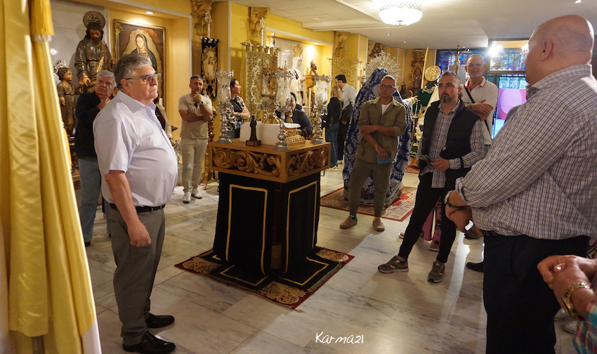 La labor de que recupere su aspecto original se ha encargado a la prestigiosa empresa Joyería Estamay, cuyo taller se encuentra en La Palma desde que se creó hace 41 años bajo la dirección de Estanis García Malavia y Mayte Malavia Ferrando. "Hemos contado con la fortuna de que, debido al vínculo de este matrimonio con la cofradía, se ha podido conseguir la mejor de las restauraciones", expuso José Felipe Rubio, hermano mayor de la cofradía. Entre los asistentes se encontraba el presidente de la Federación de Asociaciones de Vecinos de Cartagena y Comarca.