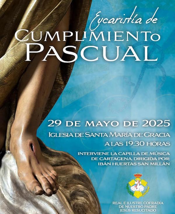 Las jornadas previas de esta semana a la salida en procesión extraordinaria de la talla que elaboró el imaginero González Moreno ofrecen en la iglesia de Santa María mañana la eucaristía de cumplimiento pascual y el viernes la exaltación que ofrecerá Joaquín Bernal Ganga, historiador de arte, y la presentación de la marcha 'Dies Truinfalis', compuesta por Jesús Añó.