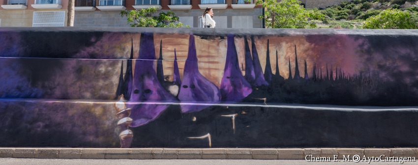 El grafiti ubicado en Santa Lucía y dedicado a la imagen titular de la Cofradía Marraja, que se elaboró durante la reciente Semana Santa, es candidato a mejor obra urbana internacional. Participa en la votación online del 1 al 10 de mayo.