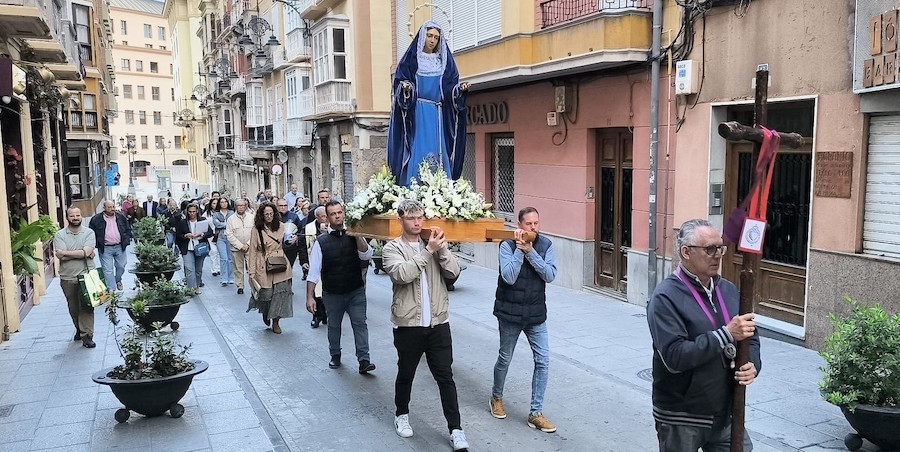 Cartagena celebró el tradicional acto por el centro histórico que todos los años organiza la Agrupación de la Virgen de la Soledad del Consuelo de la Cofradía del Cristo del Socorro con motivo del mes de mayo: mes de la Virgen María. En esta ocasión, el rezo fue encomendado al nuevo papa.