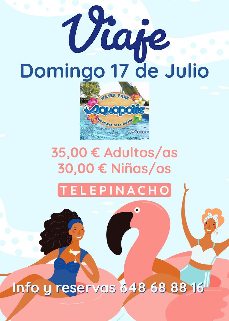 La Asociación Deportiva y Cultural ‘El Pinacho’ de la villa y condado de Santa Lucía organiza una salida para el domingo próximo, 17 de julio, al parque acuático. Más información y reservas en el teléfono 648 688 816.