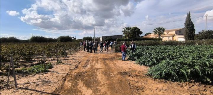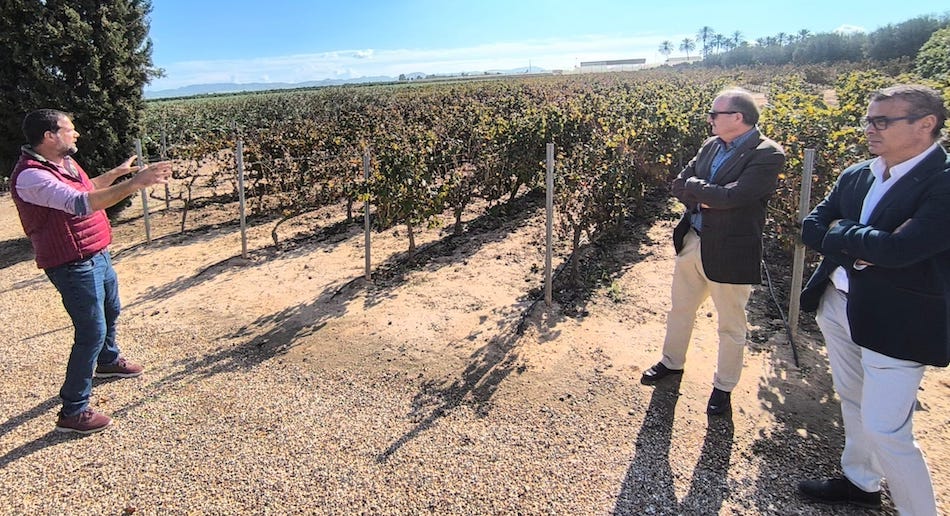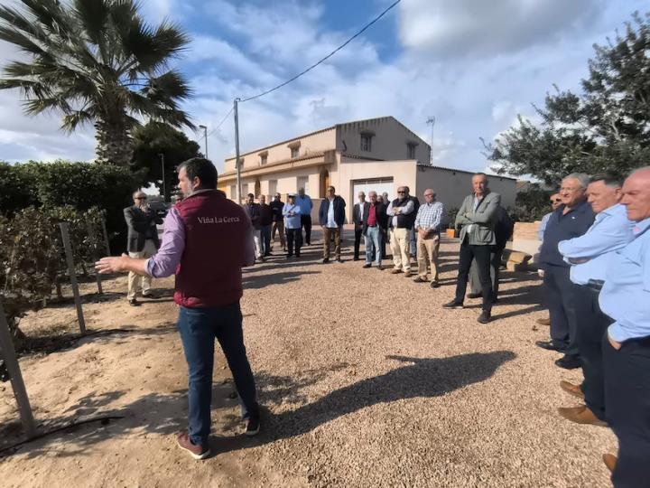 A continuación, ha cedido la palabra a Domingo Alcaraz, gerente de La Cerca y quinta generación de esta saga bodeguera, quien ha realizado una visita guiada por los viñedos “los cuales están compuestos por cerca de 8.000 cepas. Aparte, contamos con 15 hectáreas donde también producimos oliva, almendra, alcachofas, melón y forraje con que cuenta la finca”.