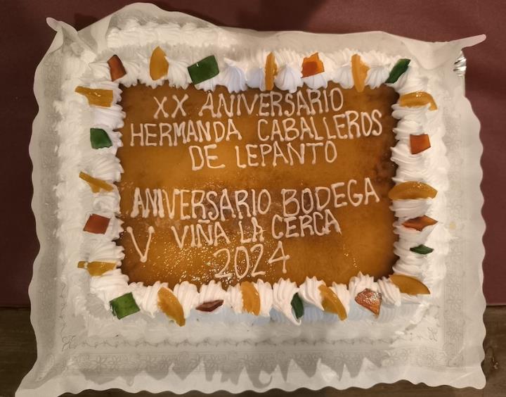 Todo ha dado paso a una comida donde Martínez Pagán ha presentado a los invitados a la jornada de convivencia y en la que se ha degustado un buen surtido de productos del campo de Cartagena. A los postres, se ha servido una tarta con motivo del vigésimo aniversario de la Hermandad y el quinto aniversario de la reapertura de la bodega.